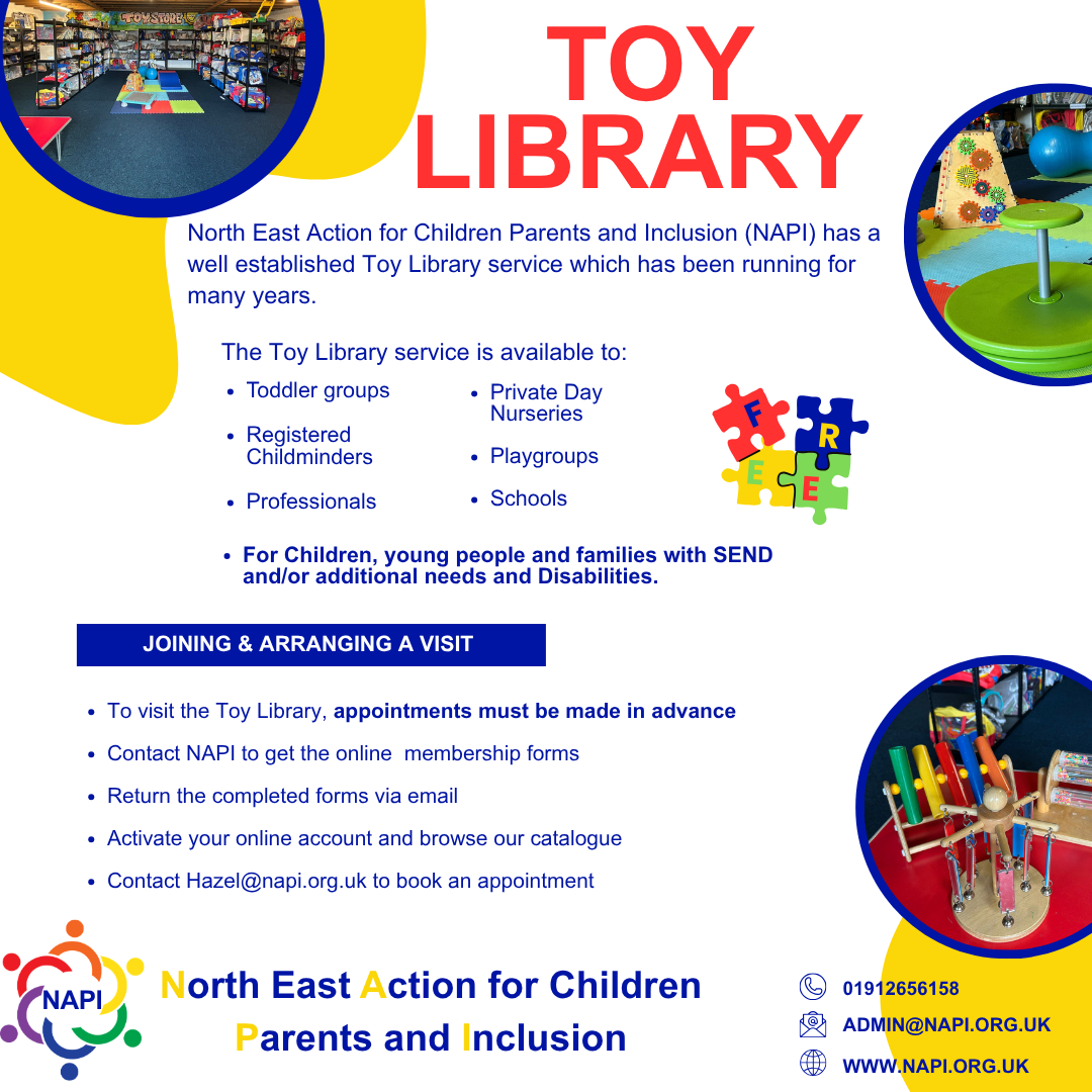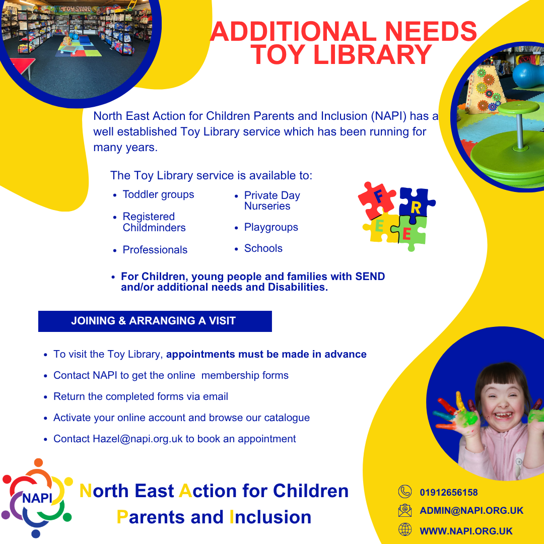 North East Action for Children Parents and Inclusion (NAPI) has a well established Toy Library service which has been running for many years.